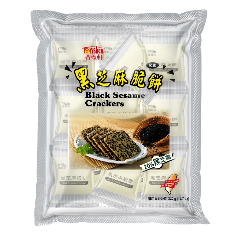In addition to the aroma from sesame powder in the dough,the cracker includes 20% high-quality black sesame seeds, covering the whole cracker.